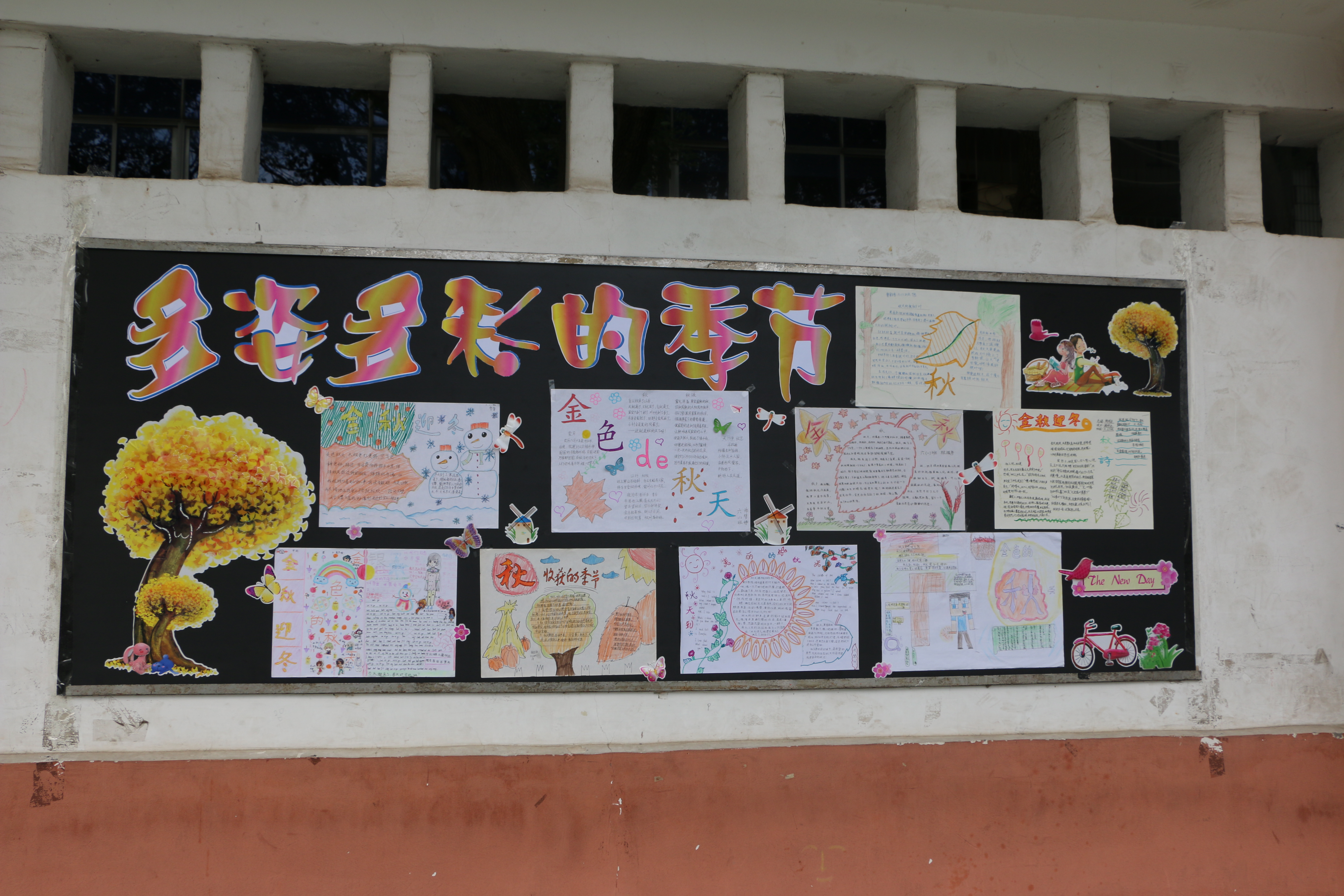 天高高的,云淡淡的,一棵棵大树脱下绿色的衣裳,换上了黄色的新装。秋风吹过,一片片落叶飘下,像蝴蝶起舞,像仙女散花。小喜鹊衔来树枝造房子,小松鼠找来松果当粮食,小青蛙在加紧挖洞,准备舒舒服服地睡大觉呢。小朋友们拾来了秋叶,拼成了有趣的图案;一群大孩子拿起画笔,记录下小动物们的活动,写出了优美的文章。瞧!下面就是他们精彩的作品: