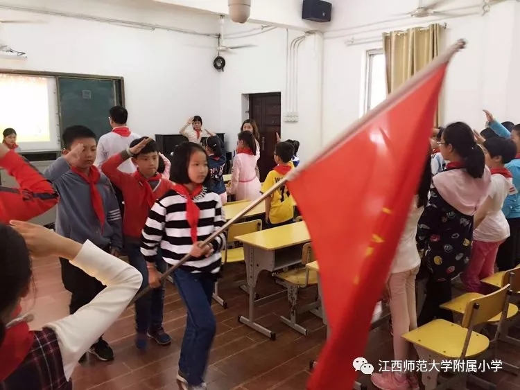 他们用满腔的热情,为同学们服务,不辞辛劳,积极果敢。他们是优秀的雏鹰,要去更高更远的天空翱翔。4月11日下午,在附小多媒体教室,在中国少年先锋队队歌嘹亮的歌声中,江西师大附小大队部开展了离任大队委卸职仪式活动。