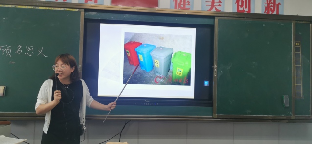 班主任带领同学们认识了不同类型的垃圾桶和各种回收标识,引导同学们积极参与垃圾分类活动。