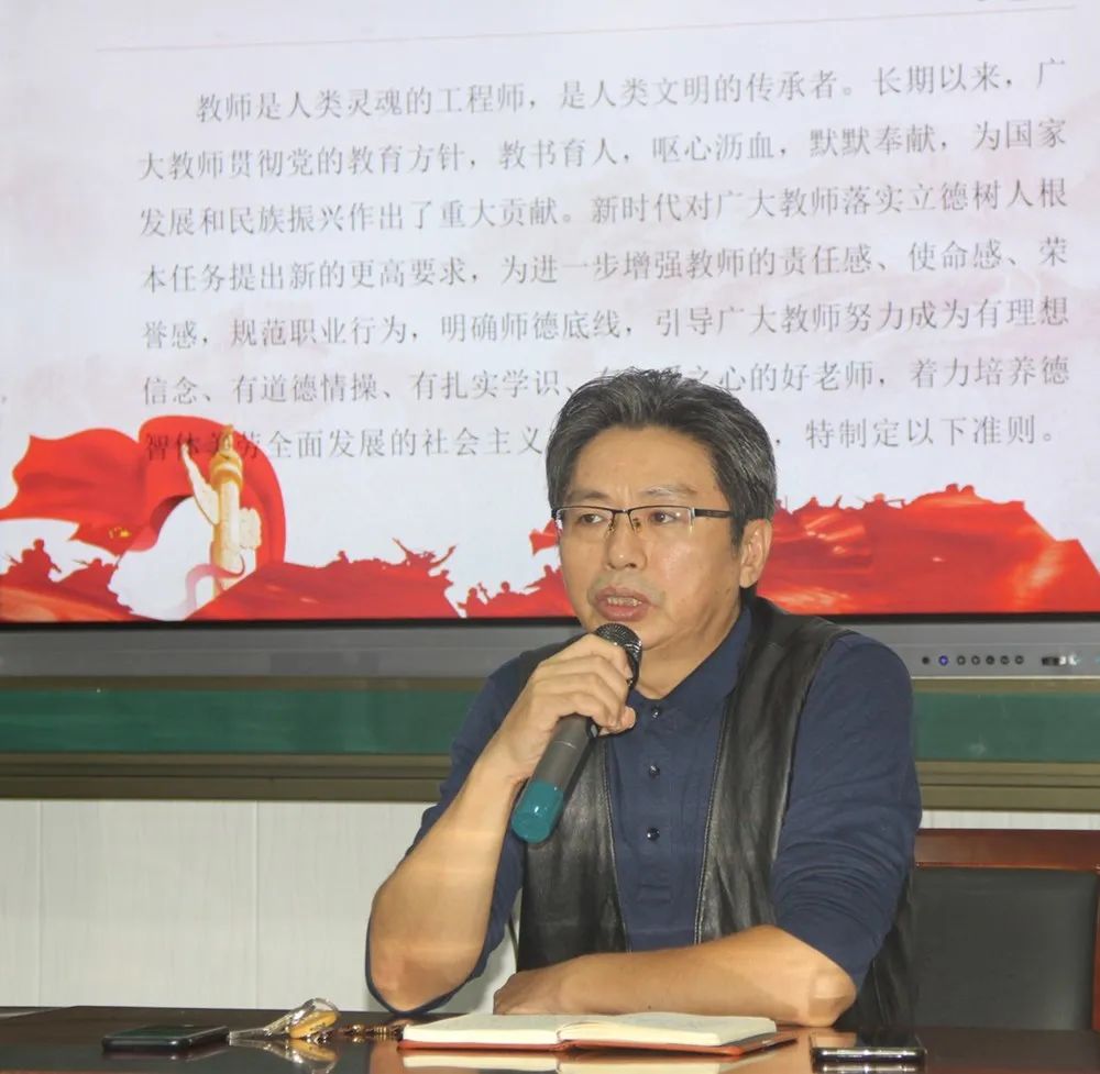 秦小艳同志结合自身从教27年教育教学经历,分享了她的教育故事,通过她的讲述,老师们感受到师德师风就是在日常工作、生活的方方面面,尤其是疫情期间“停学不停教”全面落实网上教学等感人事迹,她给我们的启示就是要时刻把学生放在心中,从小事做起,从身边做起,涓涓细流,汇成大海。