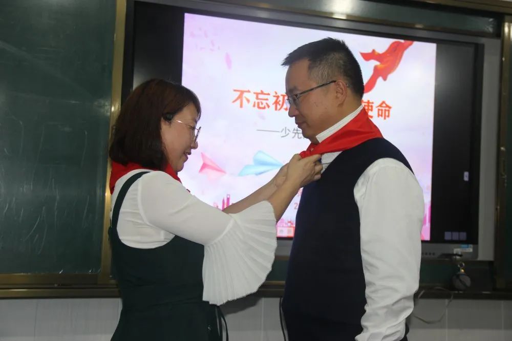 大会伊始,两位中队辅导员给甘书记和邓副校长佩戴红领巾,孙璇老师向全体辅导员示范了正确的队礼,会议中再次强调规范少先队礼仪的重要性,要求中队辅导员加强这方面的教育。