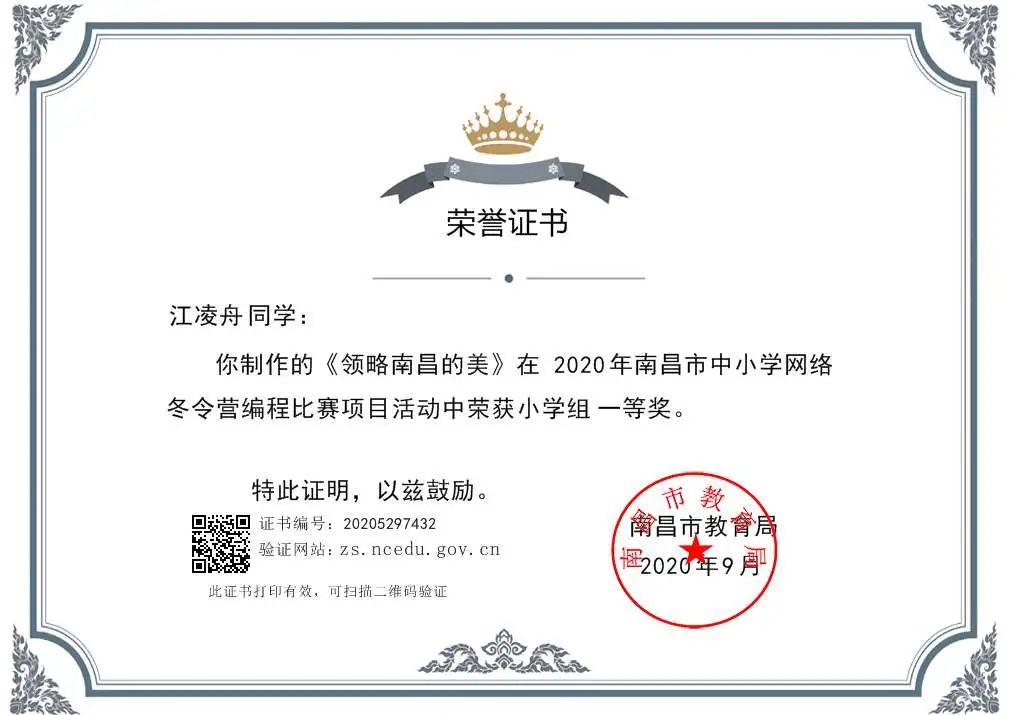 热烈祝贺17live 江凌舟同学在省教育厅组织的第十九届江西省中小学电脑制作技能提升活动中荣获“小学组趣味编程专项类二等奖”。