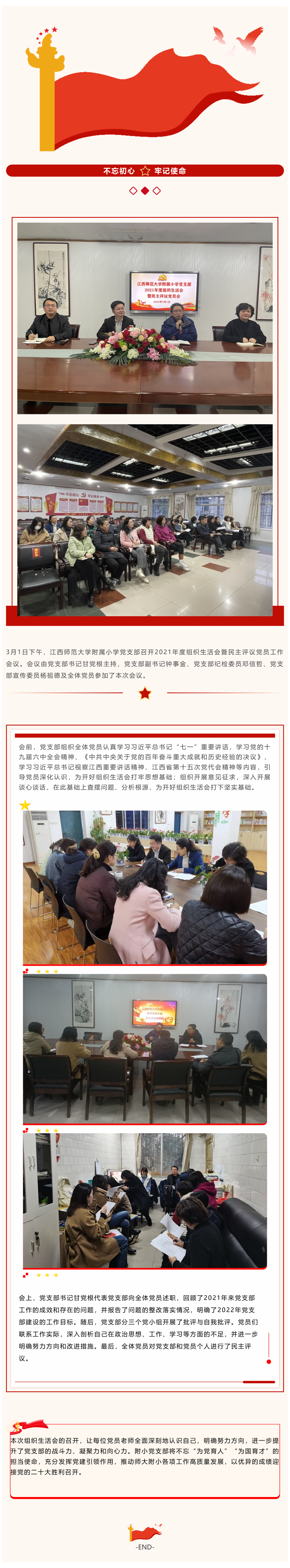 江西师大附小党支部召开2021年度组织生活会暨民主评议党员工作会议
