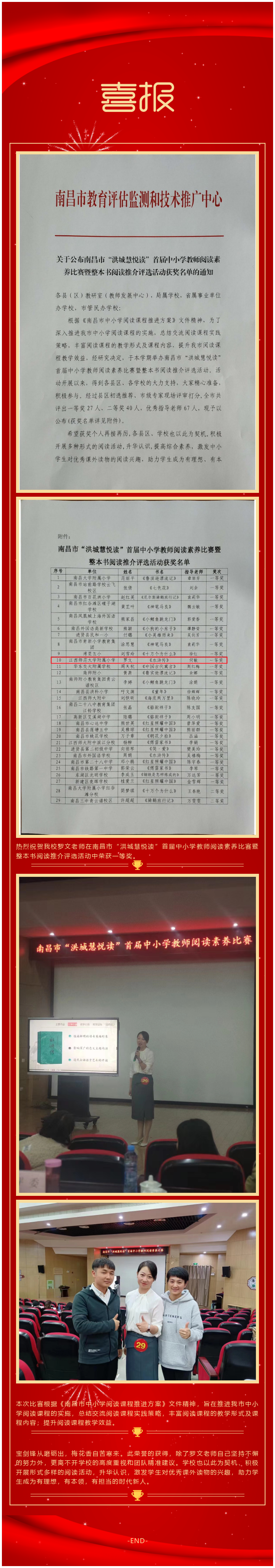 喜报〡热烈祝贺17live 教师在南昌市“洪城慧悦读”首届中小学教师阅读素养比赛暨整本书阅读推介评选活动中荣获一等奖