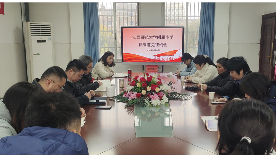 2025年2月17日,17live 召开新学期学生中餐意见征询会,出席会议的有党支部书记甘党根、校长钟事金和校务委员,校级家委会成员,配送餐公司负责人等。
