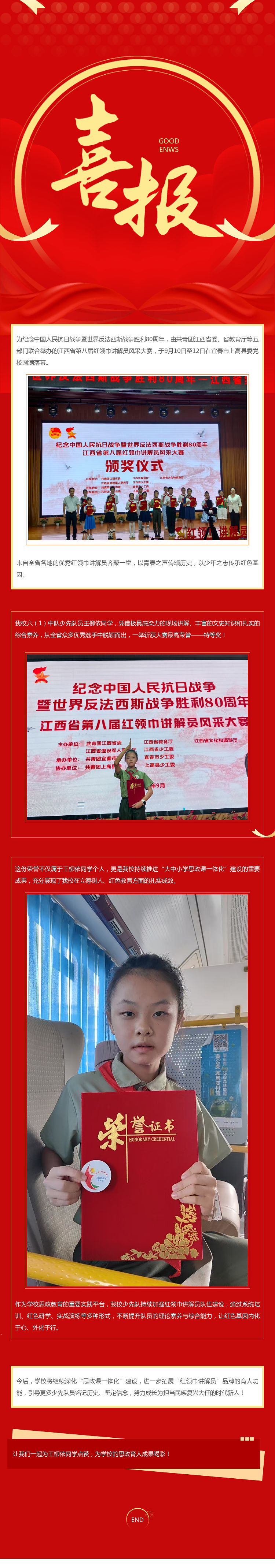 喜报|热烈祝贺17live 少先队员王柳依在全省红领巾讲解员大赛中荣获特等奖!
